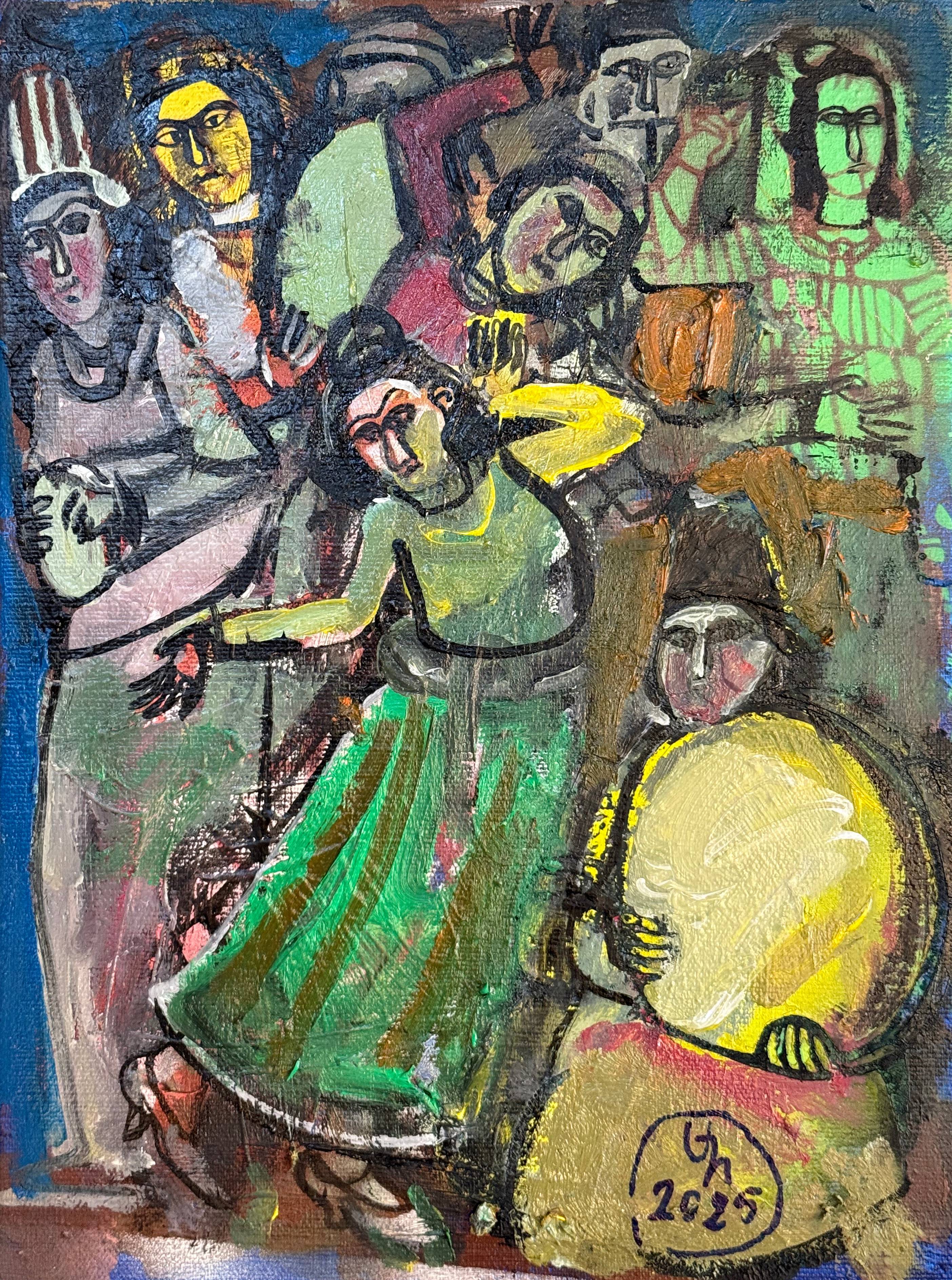 The exuberant activity of Sarkis Hamalbshian leaves the impression of a volcanic eruption, a sort of perpetuum mobile, he values and cherishes his every day and every hour . And although. His works never get stuck in the studio for long, a visitor may feel overwhelmed with the ever increasing quantity of canvases, rich in intensive, yelling, challenging music of painting.